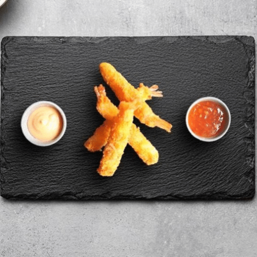 Tempura crevette, concombre, oignon frit